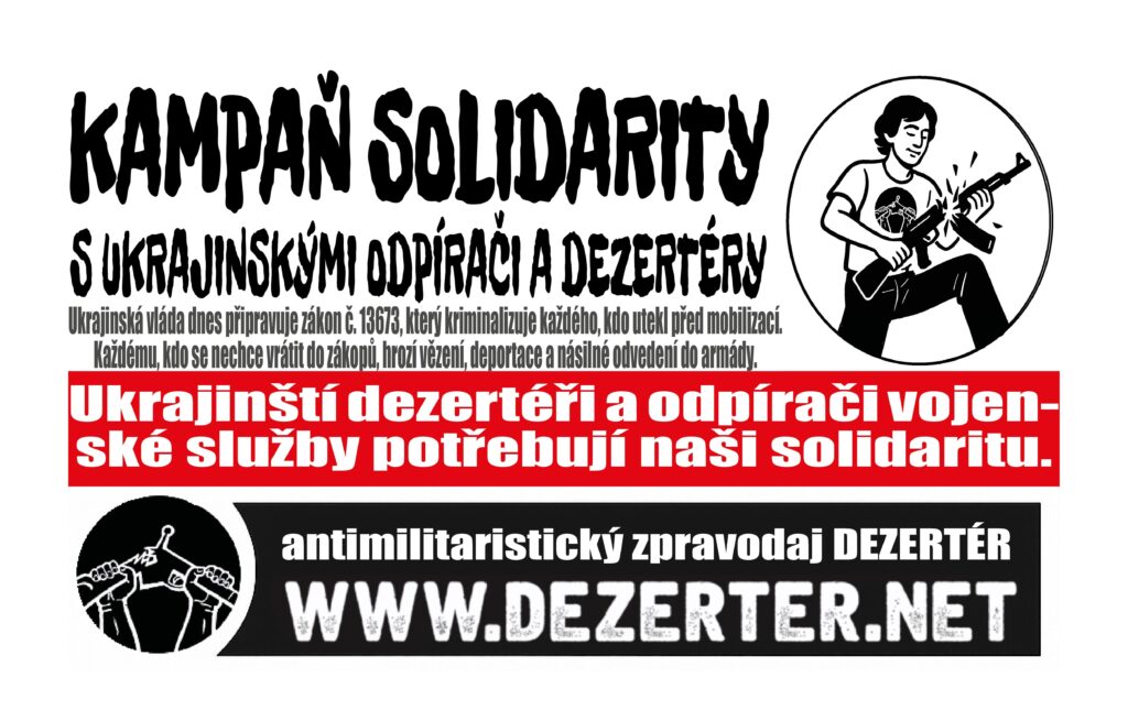 📢 Více informací o Kampani solidarity zde: https://dezerter.noblogs.org/kampan-solidarity-s-ukrajinskymi-odpiraci-a-dezertery/