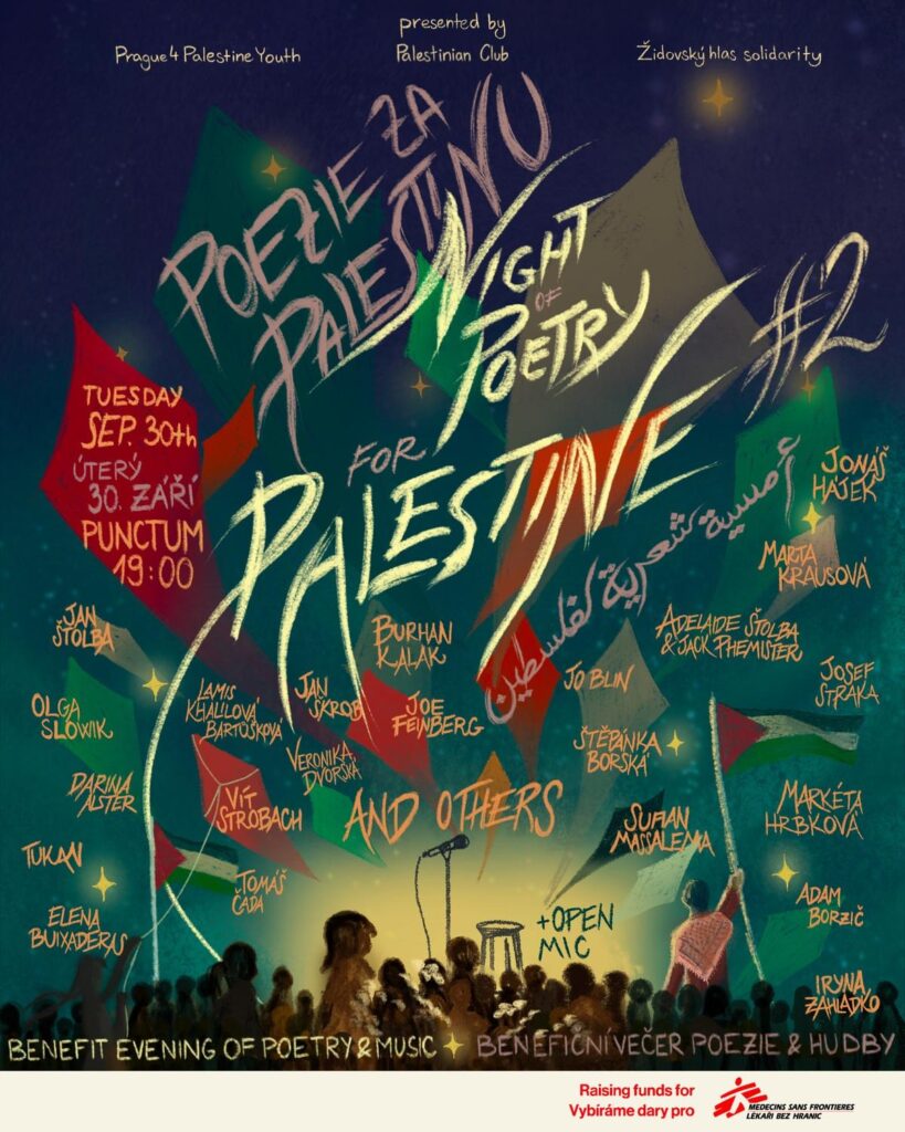 ✨ Palestinský klub společně s kolektivy Prague4PalestineYouth a Židovský hlas solidarity vás po roce srdečně zve už podruhé na benefiční večer plný poezie a hudby. Čekají vás krátká čtení, hudba a společné připomenutí básníků a spisovatelů, kteří byli zavražděni.