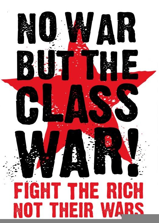 Pouze třída pracujících, která vytváří veškeré bohatství a která nemá žádné společné zájmy s těmi, kdo kradou bohatství, které vytváříme, může této válce buď zabránit, nebo spolu s ní zahynout. Válka nebo revoluce! Když říkáme „Žádná válka kromě třídní války“, je to výzva k boji za osvobození nás samotných, pracujících, tedy drtivé většiny, proti existenčním zločinům kapitálu a vládnoucí třídy, té malé parazitické menšiny.