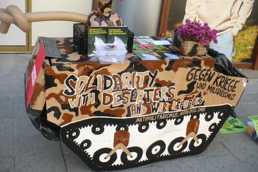 Tank se valí ulicemi takzvaného Rakouska. Ale do války nevyrazí! Jeho dělo bylo deformováno, aby nemohlo zabíjet. Jeho konstrukce slouží jako stůl pro informační materiály o veřejné sbírce pro dezertéry a válečné uprchlíky. Tento tank není strojem na zabíjení lidí, je symbolem odporu proti válečnému soustrojí, proti vojenské mobilizaci a proti kultu militarismu. Kamkoli tento tank jede, šíří jasné poselství: Vítejte, dezertéři!