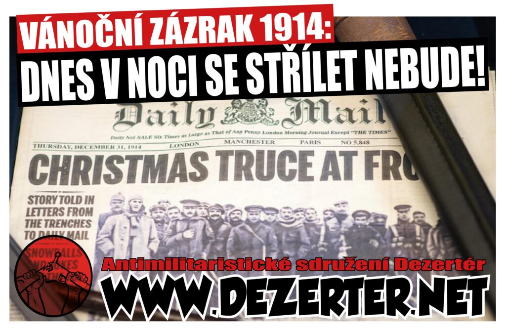 Dnes 25.prosince o Vánocích roku 1914 utichla střelba a všechny rozkazy šly stranou. Do příměří se zapojilo až 100 tisíc převážně britských a německých vojáků uprostřed tragédie první světové války. K vánočnímu zázraku došlo nejprve v okolí belgického městečka Ypres a postupně se rozšířil. Iniciativa prý přišla ze strany německých vojáků. Zákopy ozdobili stromečky a svíčkami.