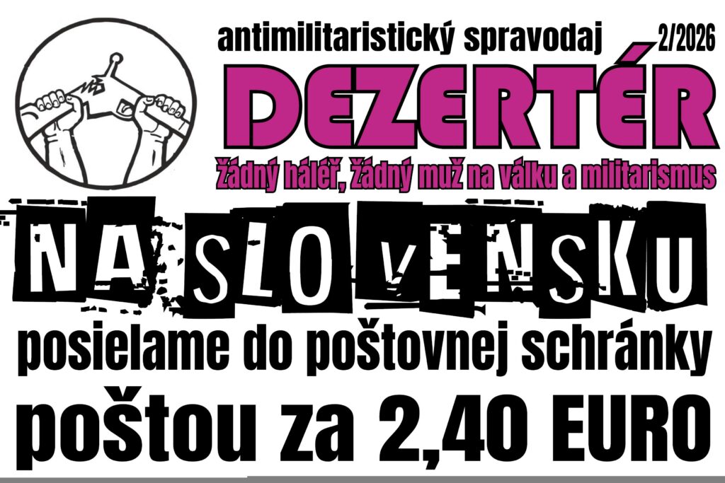 Pre odporcov vojny, antimilitaristov a pacifistov zo Slovenska máme dobrú správu. Od dnešného dňa je možné si nechať zasielať Dezertéra slovenskou poštou rovno do svojej poštovej schránky za 2,40 eura ako obyčajný list.